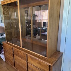 2-Piece Solid Oak China Cabinet w/ Lighted Display And Storage $399El Paso, TX
