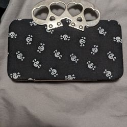 Like New Skull print Wallet w/Metal Skulls handle (Heart eyes) Pink inside