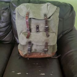 Swiss Vintage 1961 L. Christe Walchwil Salt and Pepper Leather and Canvas Rucksack Backpack$200El Paso, TX