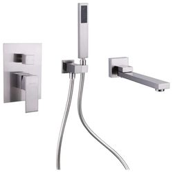 Wall Mounted Bathtub Faucet with Handheld Shower, Solid Brass 180° Swivel Bathroom Tub Filler Faucet with Hand Shower Modern Single Handle Tub Faucet $140Red Oak, TX