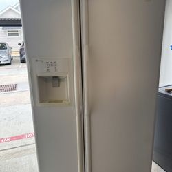 Whirlpool refrigerator side by side stainless steel with water and ice dispenser dimensions 68 7/8 height 35 7/8 width 32 depth working perfectly no $465Euless, TX