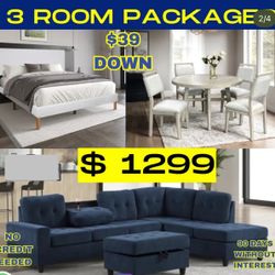 NEW 3 ROOM PACKAGE DEAL- BED MATTRESS DINING ROOM SECTIONAL SOFA AND FINANCING $1,299Fort Worth, TX