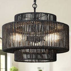Bagood 18" Rattan Pendant Lights Black Hand-Woven Rattan Chandelier 3-Light Woven Pendant Light 3-Tier Wicker Pendant Lights Rustic Light Fixtures Boh$100Crowley, TX