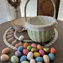 Large Fabric Lined Easter Basket With Decorative Eggs$12Cross Roads, TX