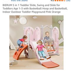 BIERUM 5 in 1 Toddler Slide, Swing and Slide for Toddlers Age 1-3 with Basketball Hoop and Basketball, Indoor Outdoor Toddler Playground Pink Orange$80Dallas, TX