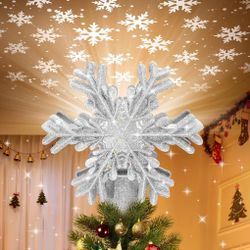 Christmas Tree Topper Lighted with Built-in LED Rotating Snowflake Projector, 3D Hollow Glitter Silver Snowflake Tree Topper for Xmas Party Holiday Ch$10Fort Worth, TX