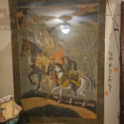HUGE Mughal Framed Rajasthani Painting of Maharaja on Horseback - India$450Wht Settlemt, TX