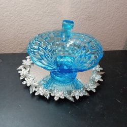 GORGEOUS VTG Northwood Azure Basket Weave 6" Open Candy Compote