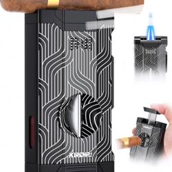 Torch Cigar Lighter with V Cut Cigar Cutter, Cigar Holder, Dual Windproof Jet Flame, Unique Gift Box, Multi-Functional Cigar Accessories, Cool Lighter$20Arlington, TX