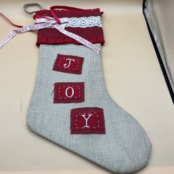 Vintage Primitive Country Decor Stocking JOY Burlap Lace Ribbon Christmas $15Arlington, TX