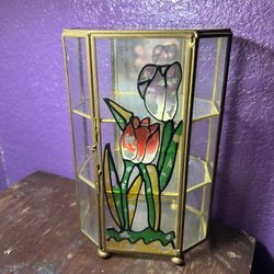 Vintage Glass Brass Mirror Curio Cabinet Display Stained Glass Tulips$75North Richland Hills, TX