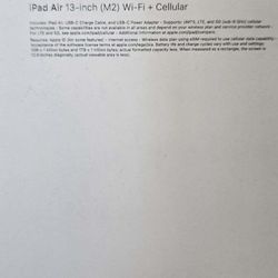 Apple 13" IPad Air M2 Chip Built for Intelligence WiFi / Verizon 128Gb New In Box$589Arlington, TX