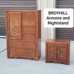 Vintage Broyhill chinoiserie Armoire Dresser and Nightstand set