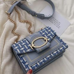 Mini Plaid Pattern Tweed Bag, Chain Crossbody Flap Purse 💙$16Dallas, TX
