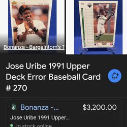 Jose Uribe Baseball Card $100Fort Worth, TX