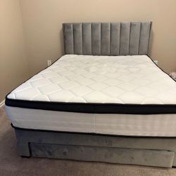 Brand New Queen Size Grey Nailhead Bed Frame With New Mattress Set/Fast Delivery$299Richardson, TX