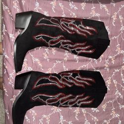Black Flame Rhinestone Heeled Boots$30Wht Settlemt, TX