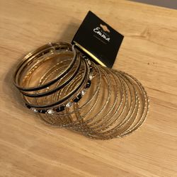 Bracelet Set of 16 Gold Black Gemstones Bangle Woman’s NEW !$12Grand Prairie, TX