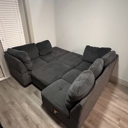 New Sectional Sleeper Chofa with Pull Bed, Drop Table & USB in Palmer Grey -Sofabed$750Carrollton, TX