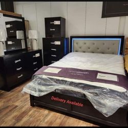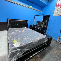 Black Led Panel Bedroom Set/Dresser, Mirror, Nightstand, Bed// Mattress Sold Separately $650Dallas, TX