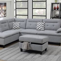 Gray Linen Sectional & Ottoman $699Richardson, TX