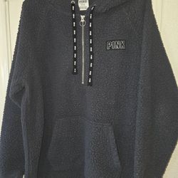 VS VICTORIAS SECRET PINK SHERPA HALF ZIP HOODIE SWEATER JACKET TOP Gray Size M$25Fort Worth, TX