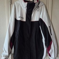 Columbia Women's Ski Jacket Sz Large White/Black/Burgundy Waterproof, Zip, Hood