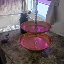 Vintage Two Tier Copper Pedestal Dessert Cake Server Stand 2-Tiered Tray Cupcake Stand Fall Autumn Harvest Decor$135Denton, TX