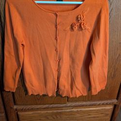 Orange Cardigan with Floral Design 3/4 Sleeve $6Plano, TX