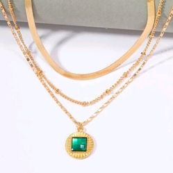 Gold Plated 3 Strand Chain Necklace With Green Zircon Pendant$18Saginaw, TX