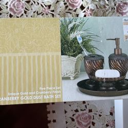 Brand New 5 piece unique gold and cranberry finish cranberry gold dust bath set$25Keller, TX
