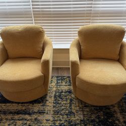 Yellow Chenille Barrel Swivel Chairs $650Fort Worth, TX