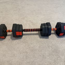 Adjustable dumbbells 50lbs plus bars and clips price firm$50Fort Worth, TX