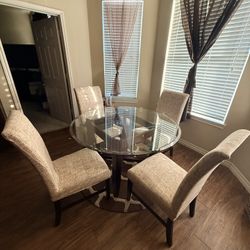 Round Glass Dining Table w/ 4 Upholstered Chairs – 5pc Set$120Wht Settlemt, TX