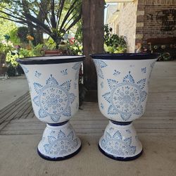 Talavera Blue Rim Hummingbird Urns. Clay Pots. Planters. Plants, Pottery $65 cada una$130Wylie, TX
