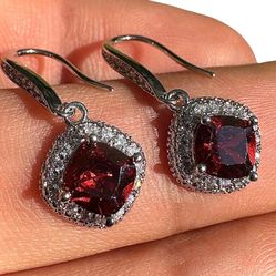 Ruby Dangle Earrings Silver Plated 6mm Red CZ Halo Drop Earrings Statement Gift for Women$17Denton, TX