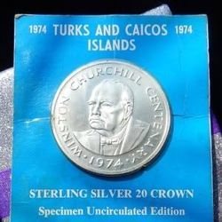 1974 TURKS AND CAICOS Silver 20 Crown WINSTON CHURCHILL Silver Coin$140Dallas, TX