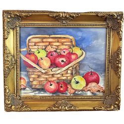 Original Watercolor Painting Red Apples Wicker Basket Gold Frame Artist Signed$75Lucas, TX