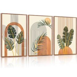KAIRNE Boho Canvas Wall Art,Abstract Minimalist Room Decor,Tropical Botanical Wall Decor, Set of 3$50Garland, TX