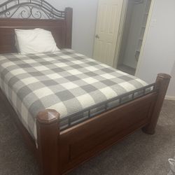 Sturdy Wooden Queen Sized Bed With Decorative Iron Wrought And Mattress$300Prosper, TX