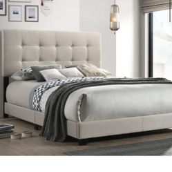 Brand New King Size Beige Tuffed Linen Bed Frame With New Mattress/Fast Delivery$399Mesquite, TX