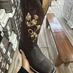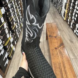 black cowboy boot with white and gold embroidery $105Dallas, TX
