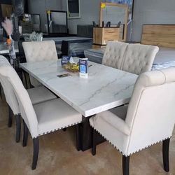 White Marble Dining Table Set 7 Pieces $1,399Arlington, TX