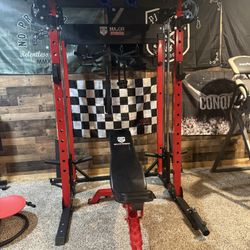 ROGUE FITNESS HOME GYM - RM4 Monster Squat Rack w Extras Weight Set Fleck Bumper Plates Bench Rubber Dumbbells Barbells Curl Bar Bumpers Weights$2,750Dallas, TX