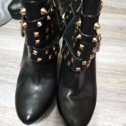 BCBG ASPEN Black Flat Ankle Boots With Gold Studs$40Garland, TX