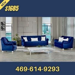 Blue Velvet Sofa Loveseat Chair With Pillows $1,685Richardson, TX