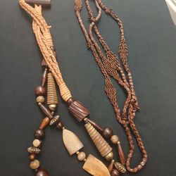 Vintage NECKLACES - Carved Wooden Necklace Braided Leather Rope & Long Hawaiian Koa Seed Apple Seed - Total of 2 Necklaces $8Rowlett, TX