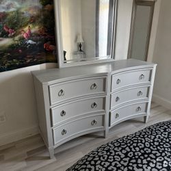Antique white dresser with matching mirror.$200Flower Mound, TX