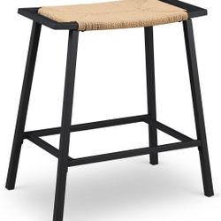 OUllUO 26" Black Bar Stools, Counter Height Stools Set of 1,Saddle Kitchen Stools for Island,Backless Wicker Bar Stools for Kitchen Counter,Weather Pr$40Garland, TX