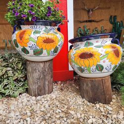 TALAVERA SUNFLOWER Clay Pots, Planters. Plants. $45 Cada Una$90Wylie, TX